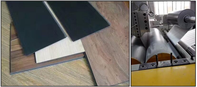 LVT地板擠出生產(chǎn)工藝:將PVC、鈣粉、增塑劑等原料經(jīng)過(guò)高速混合機(jī)組充分混合后由螺旋輸送機(jī)送至錐雙擠出機(jī),配合T型模具擠出底料并將耐磨層、印刷層分段貼合得到指定厚度的制品,擠出貼合生產(chǎn)工藝能夠取代傳統(tǒng)壓延、層壓等復(fù)雜工藝,操作簡(jiǎn)單,投資成本低、減輕工人勞動(dòng)強(qiáng)度、車(chē)間環(huán)境整潔,全線采用光學(xué)傳感器檢測(cè)與警報(bào),自動(dòng)化程度高。
